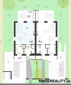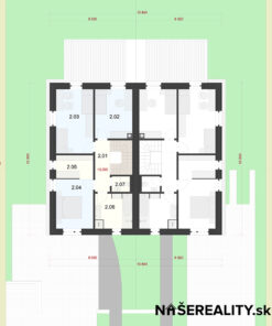 Rodinný dom s 2 BJ je projektovaný na mieru, vďaka čomu má do detailu premyslenú dispozíciu. Na prízemí sa nachádza denná časť s priestrannou obývacou izbou, jedálenskou časťou a kuchyňou (46 m²) s praktickou komorou. V zádverí sa nezabudlo na potrebu úložného priestoru – na veľkú vstavanú skriňu, kde uložíte množstvo topánok a búnd, hneď pri vstupe je wc s technickým zázemím. Využitý je tu naozaj každý centimeter a tak pod schodiskom oceníte ďalší úložný priestor – kumbál. Na poschodí sa nachádza nočná časť s troma spálňami, pričom hlavná spálňa má aj svoj vlastný šatník (5,8 m²). Do priestrannej kúpeľne (8,6 m²) sa zmestí vaňa aj sprchový kút, praktické je samostatné wc s umývadlom.