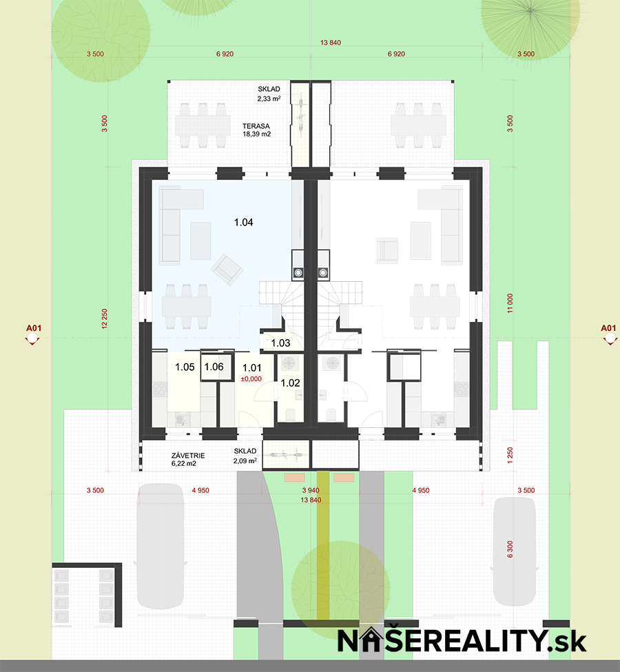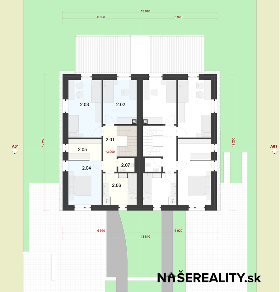 - v každej obytnej izbe je predpríprava na klimatizáciu so zabudovaným kastlíkom