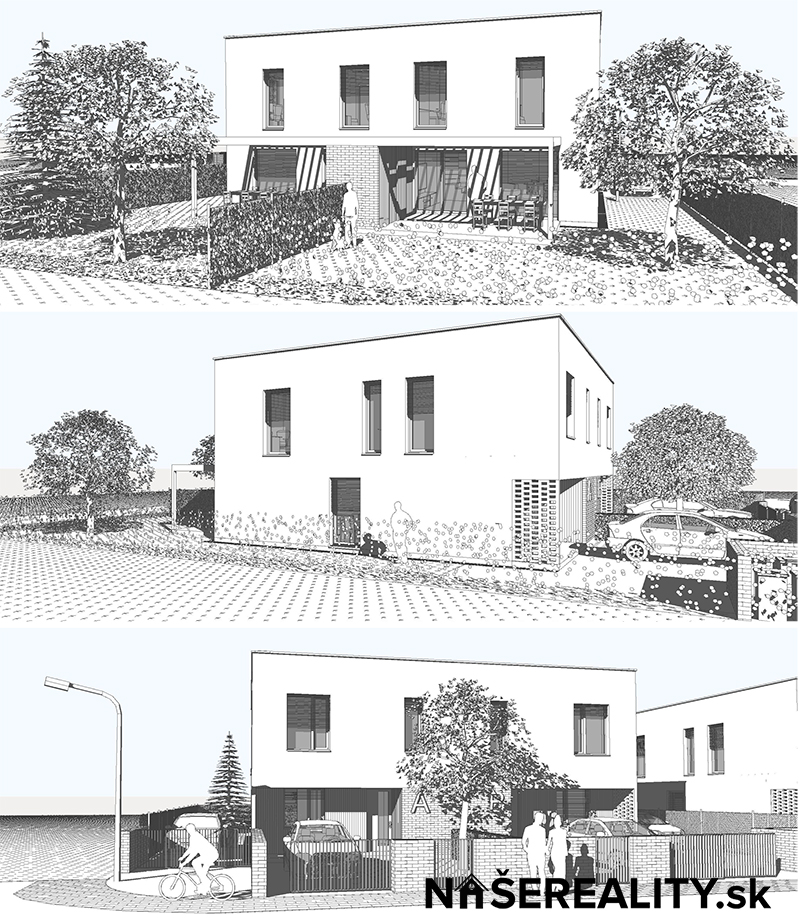 - plastové okná od spoločnosti Rakystav s izolačným trojsklom s montážou na hydroizolačné pásky a predprípravou na vonkajšie el. žalúzie, na terasu výstup cez bezbariérový HS portál