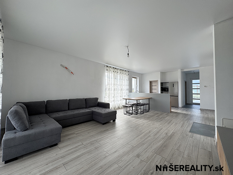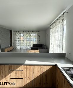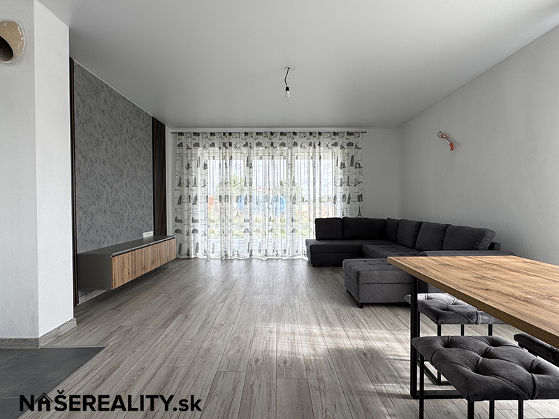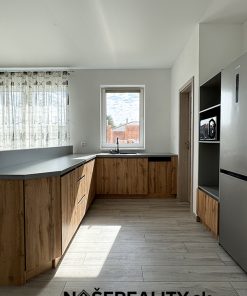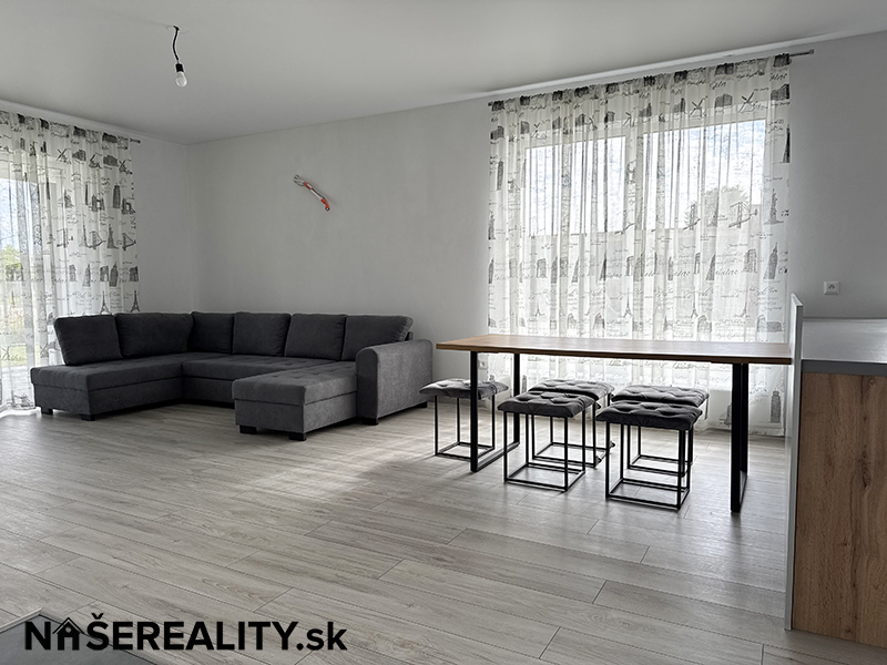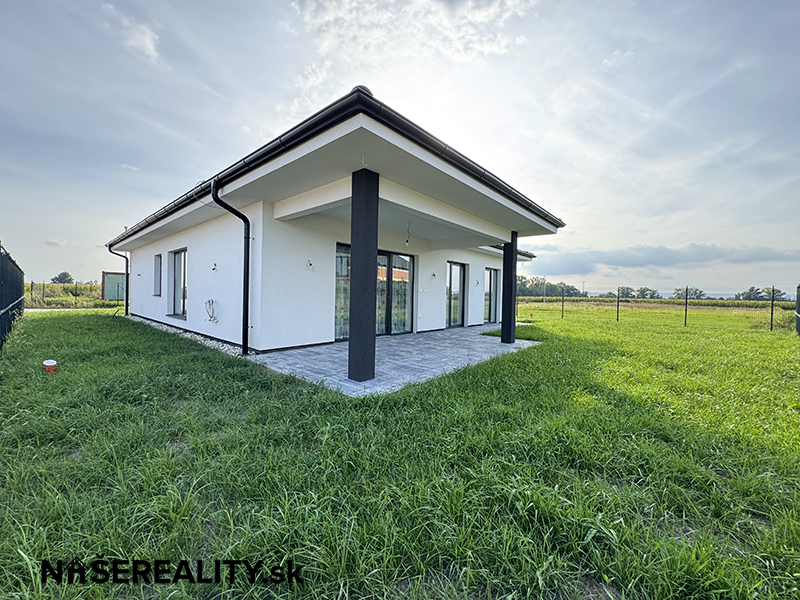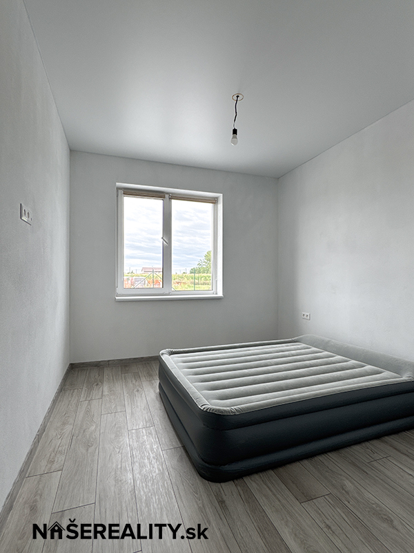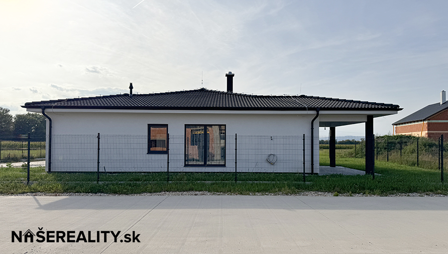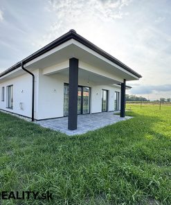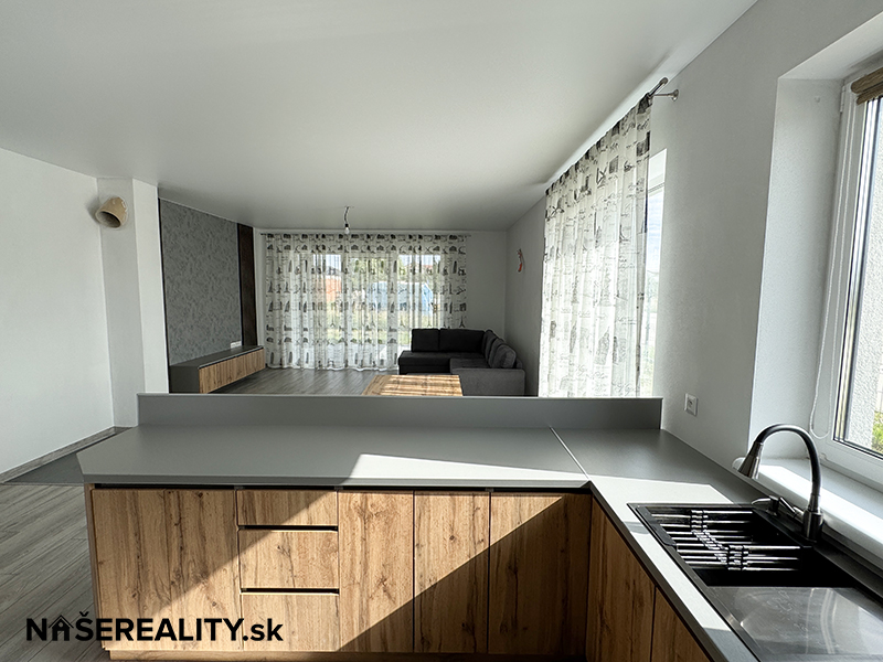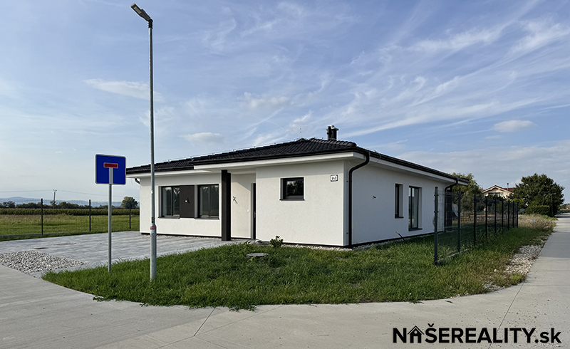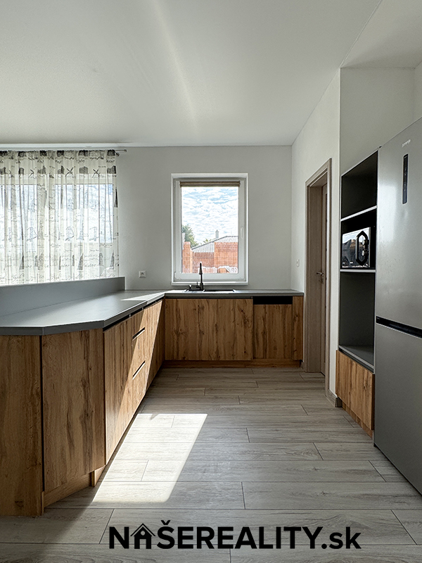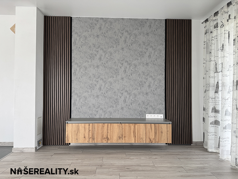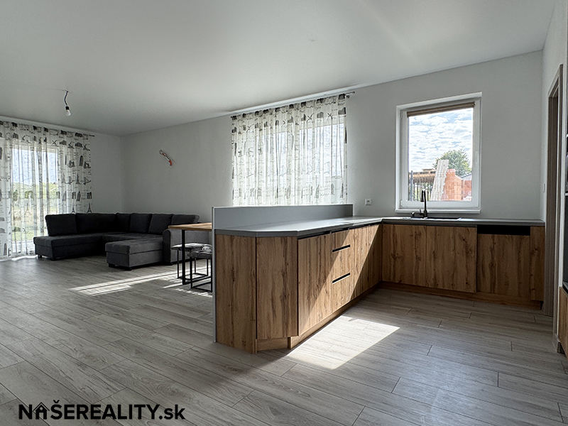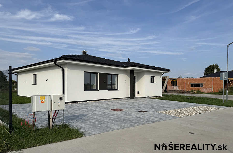 - interiér – vymaľovanie na bielo s osadenými vypínačmi a zásuvkami, laminátové podlahy, dlažba v predsieni a kúpeľniach, obklady v kúpeľniach, sanita, kuchynská linka, jedálenský stôl s taburetkami, nástenná komoda s dreveným obkladom v obývacej izbe, šatníkový policový systém v chodbe a izbe, sedačka, manželská posteľ (dom sa predáva zariadený ako je na fotografiách v prípade záujmu je možné nábytok a ako aj kuchynskú linku odstrániť)